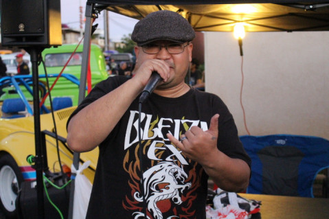 BLEIZN Fx co-owner Bernard Cabral is pictured on the mic at the CRUZ NIGHT Hot Rod