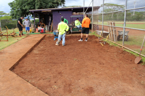 Coach Yonamine is grateful for the help of the community volunteers from Local 630 and HMAA, as well and from his friend Peter Iriati. With their help and expertise, Yonamine has hit the ground running in his efforts and goals to make immediate improvements to the Charger baseball facility since taking over this year as the Charger baseball program skipper.