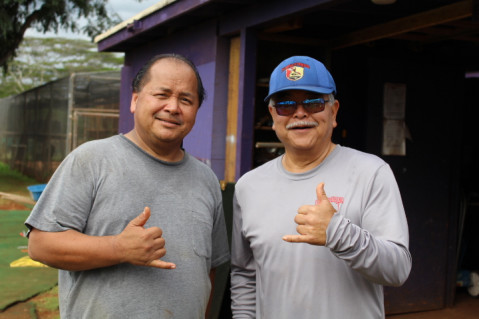 Peter Iriate, Masons Union Local 630 (L), and Wes Yonamine, Pearl City Chargers