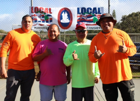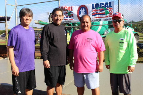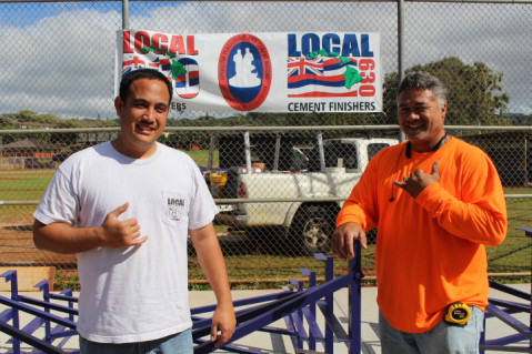 "We want to thank HMAA, the medical group, for coming out here and helping us throughout. We also want to thank NBA, National Benefits Solutions for contributing. Also, our donors like Sam Ogiri from Reef Development. Our apprenticeship program, we also have our Union which is a different entity, Local 630 journeyman and apprentice that came out today. OK Hardware gave us all the fiber that's in the concrete and that's a good thing that helps control the cracks for the product. We have our members out here volunteering on their own time, and some of them are graduates of Pearl City High School. We called and asked for their help and they came out willingly and 100% to help their school."