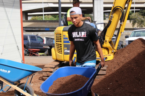 Pearl City Head Baseball Coach Wes Yonamine and his Charger baseball players teamed up with players and coaches from Iolani and Punahou on Saturday to help move Kahauiki Village in Kalihi one step closer to its grand opening this weekend.