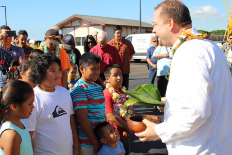Kahauki Village keiki participate in a traditional Hawaiian blessing