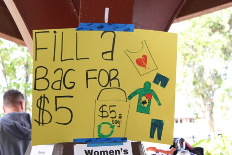 There's lot's of garage sale items to choose from like kids & adult clothing, toys, household goods, and ono snacks (shave ice, popcorn, desserts).from the Shockers Soccer Club (Ally's former teammates).