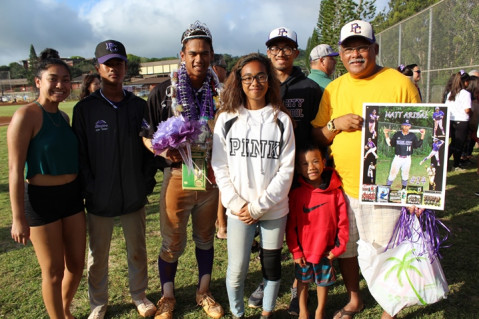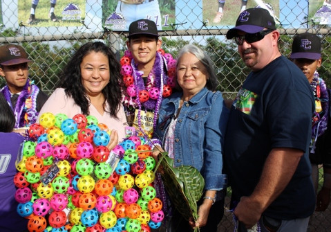 Cade Halemanu is pictured with his ohana during the Chargers Senior Day celebration.