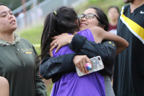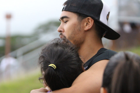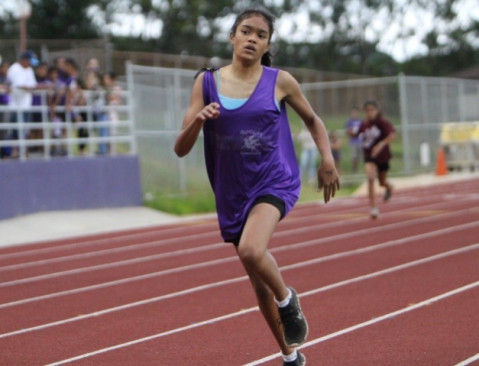 Nylah Martin is a very special and talented 6th grader at Pearl City Elementary School. Nylah recently won the 6th Grade 400 Meter Dash at the Pearl City Complex Track Meet held at Pearl City High School on Friday, April 28. Nylah ran with a heavy heart and the spirit of her late father, James Martin who passed away a few days before the meet on Wednesday, April 25. With her father’s spirit on her shoulders, within her heart, and with every stride, and with her mom Hannah and the Martin ohana in the stands cheering her on, Nylah became a champion after breaking the meet record of 1:12.37 with a new meet record time of 1:08.57. Ashley Won (Manana) 1:11.12 and Summer Shook (Kanoelani) 1:11.50 finished behind Nylah in second and third place while also breaking the previous record set back in 2014.