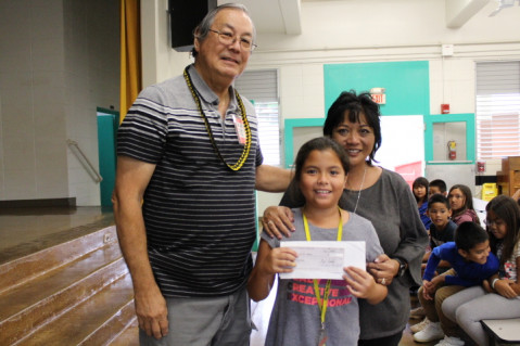 grader Genna Fukumitsu with her Good Citizen Award and $50.00 check.
