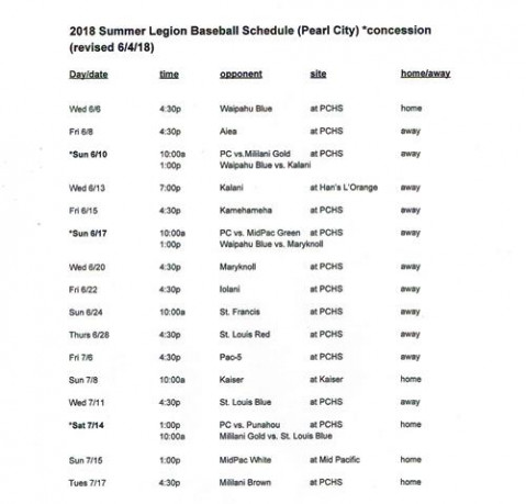 Please support our 2018 Pearl City 19U American Legion season and team. The games are on Sunday 6/10 and 6/17, and Saturday 7/14, Pearl City baseball will have a concession stand for the doubleheader games scheduled for the day. Come and watch teams from different OIA/ILH high schools play and support out concession.