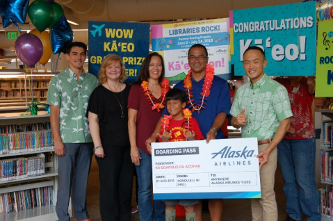 “Congratulations to KÄÊ»eo and his family! We are so grateful to the Friends of the Library of Hawai‘i and Alaska Airlines® for their support, and providing such an awesome grand prize to celebrate our summer of reading!” said State Librarian Stacey A. Aldrich.