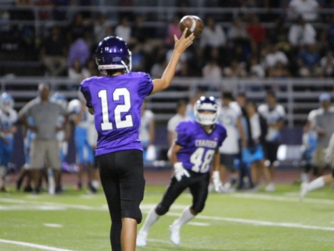 Pearl City QB Christian Tielu got the statrt for the Chargers. Tielu gave up a 52 yard