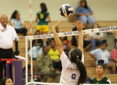 Lady Chargers senior setter Tyra Yamaguchi is pictured in action against