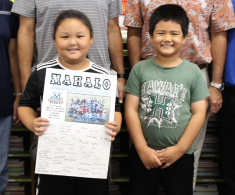 Pearlridge Rotarians would like to thank Momilani Assistant Principal Mr. Garrett Arakawa, and Momilani Elementary third grade teachers Mr. Masaru Uchino and Ms. Linda Nakata and especially the amazing, intelligent, polite, and hard-working third grade students for welcoming us into their classroom on Monday. Also, we are very grateful for the wonderful Mahalo card designed and personally signed by the entire third grade class.