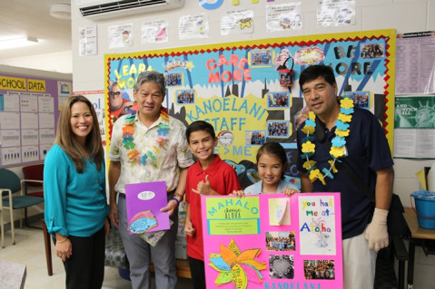Mahalo once again to Principal Kunihisa and the Kanoelani ohana for a wonderful experience for both Mr. Kurisu and myself. The students put a lot of their Heart and Soul into preparing for our visit to their school and classrooms with an incredible mahalo poster, gifts, and very special inspirational messages written and shared to us through the goodness of their Hearts. We were truly touched and appreciate them all.