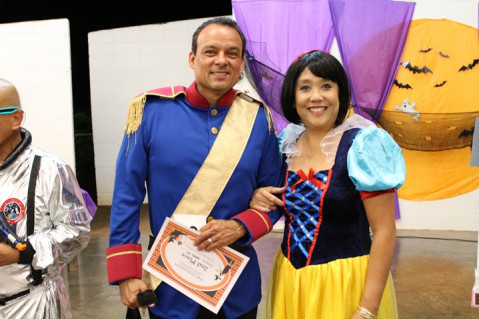 is pictured with a happy Halloween Bash costume contest winner.