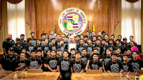 Mahalo to Janelle Uekawa for the awesome photos of Wednesday's Recognition Certificate presentation at Honolulu Hale to the 2018 Pearl City Chargers Oahu Interscholastic Association Junior Varsity Division 2 Football Champions.