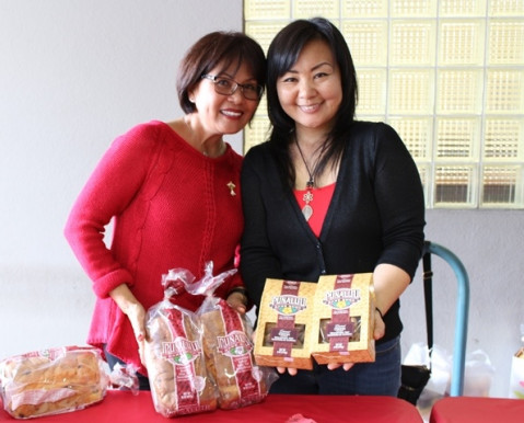 Santa’s helpers deliver Punaluu Sweetbread and Mac Cookies to Pearl City Shopping City Merchants