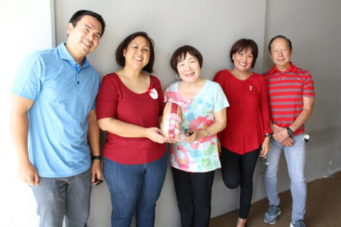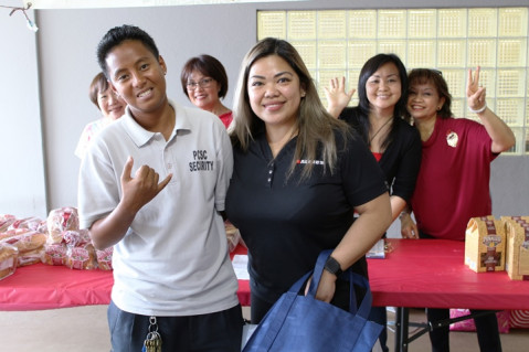The Pearl City Shopping Center corporate office staff from aio distributed their annual Holiday gifts of Punaluu Sweetbread and Macadamia Nut Cookies to the Pearl City Shopping City Merchants on Thursday.