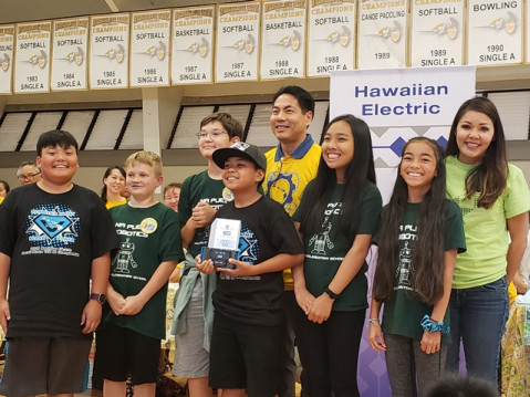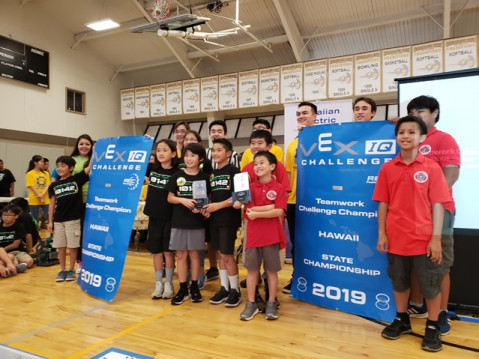 - Far left to right: Hawaiian Electric’s Rae Inn with MÄnoa Elementary (in black)and BSA Aloha Council Troop 32 of Waipahu (in red). The two roboticsteams earned the title of Teamwork Champions at the Hawaiian Electric Companies’HawaiÊ»i State VEX IQ Elementary School Championship held March 2. A total of 19 teams qualified for the 2019 VEX World Championships during two consecutive weekends of robotics competitions. Photo credit: Art Kimura, HawaiÊ»i Space Grant Consortium