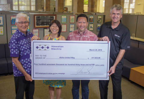Employees and retirees of Hawaiian Electric raised $417,633 for Aloha United Way (AUW) during a year-long fundraising campaign to support the nonprofit agency’s mission of building stronger, more resilient communities.