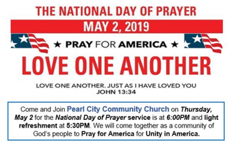 As a member of the Board of Deacons of Pearl City Community Church (PCC) 933 Lehua Ave., Pearl City, we invite you to join us at our National Day of Prayer Service on Thursday, May 2 at 6:00 p.m. with light refreshments prior to the service.
