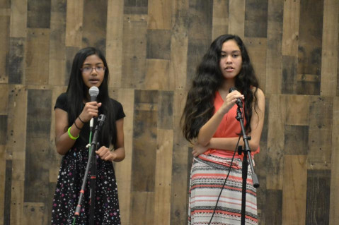 This past Sunday, Tiny Tadani booked Ka Pilina me ka Hula o ka Ho'okanikapila to perform at the 'Ohana Hale Marketplace. This was the first time I've ever seen my mom have 20 performers on one day. She had first time duo singers, Gabby and Loganne, a first time solo vocal/ukulele, Josiah, and of course her hula dancers, Jeny, Arahmae, Rylee, Caitlyn, Nalani, Kristy, Kaydence, Peyton, Persephone, Diana, Nami, Macie, Maddie, Lea, Avery, and Mikayla. And, my sister, Kamalani was emcee and she also danced hula too. She worked hard making sure the performers were in their line-up and ready to go stage with help from Hula mom, Joanne. Hula dad, Matt, helped with the sound system.