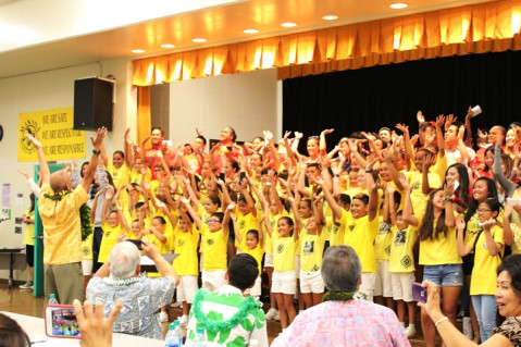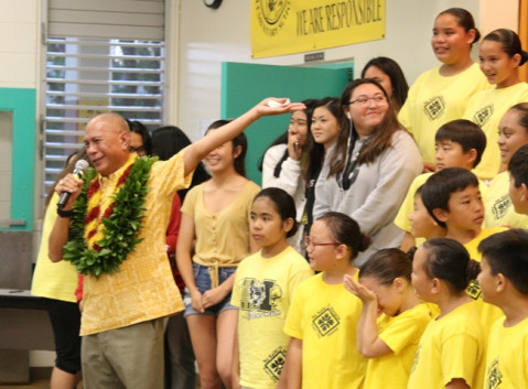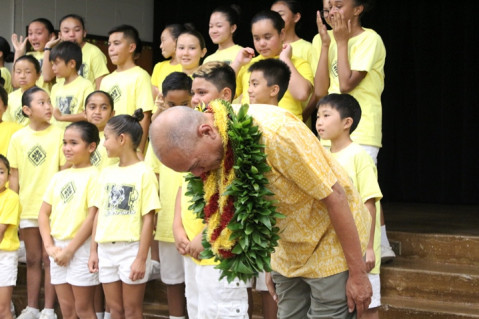Manana Elementary School bid a heartfelt Aloha on Friday, May 3 to their beloved Mr. Aaron Paragoso who will be retiring at the end of the school year after 25 years of teaching music and directing the Na Keiki ‘O Manana Choir at the school.