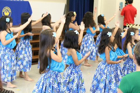 Mahalo to Makua Leilani and her amazing Aloha Hula girls from Palisades Elementary School who performed a beautiful hula this morning during the school's awards ceremony ield in the cafeteria.