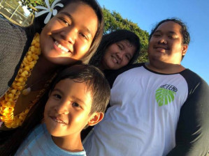 Grass skirt makers:  Christine, Makua Janet, Caitlyn,and Sissy