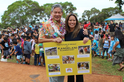 Principal Stacie Kunihisa, Duane Kurisu, Kanoelani Elementary Vice Principal Lisa Tominaga.