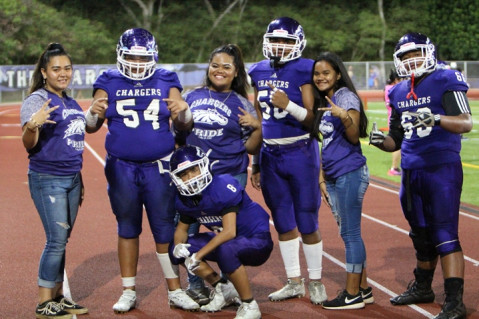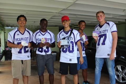 I was at my computer posting last night's homecoming game photos a few minutes ago and a group of Charger teammates walked up to my front door selling their Charger Football Program fundraiser cards. What an honor! These guys were battling on the gridiron against Kaimuki last night and are spending their morning walking door to door in the Pearl City community in support of the their football program.