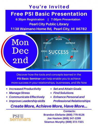 Free PSI Presentation, Monday, Dec. 2 at Pearl City Public Library