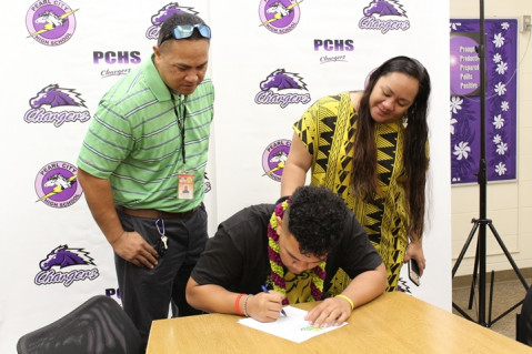 “Today was a very important day for Brady and for the Chargers football program. Brady is keeping his dreams alive and getting an education. I told him that it’s going to be tough on the mainland, but never quit. Whatever you start, finish. Once you get a degree, no one can take it away from you. It doesn’t matter what division you play in, Division I, II, III, or Junior College, you earned your Bachelor of Arts degree. Maybe if he does well, he can go and play in the NFL. Always pursue your dreams. “