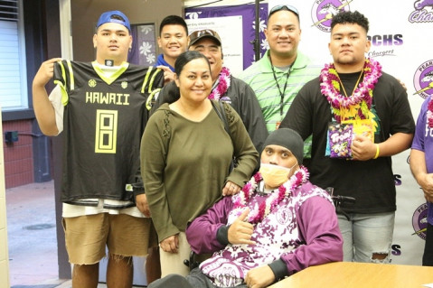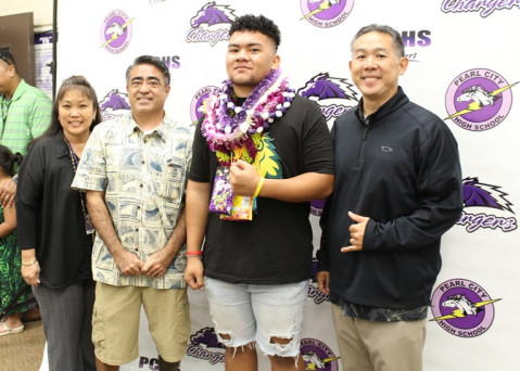 “I feel blessed. Not everyone can go to a Division I or Division II school. For me to get offered is a really big thing. During my four years as a Charger I have really gotten to know the community, especially through their support at every game win or lose. They have been there for all of us. I would really like to thank coach Kami and coach Cajo for helping me on the field all four years. I would also like to thank Coach Kaji for helping me in school and Mr. Miyashiro. “
