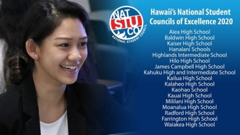 Pearl City, Hawaii April 27, 2020) — For its exemplary record of leadership, service, and activities that serve to improve the school and community, the Kaohao School student council has been recognized as a 2020 National Gold Council of Excellence by National of Student Council (NatStuCo).