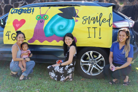 The Pearl City Highlands Elementary School Ohana sent off the 6th grade Class of 2020 in style this afternoon as they greeted the graduates with Love and Aloha during a well-planned and fun drivethru commencement ceremony that recognized each graduate while wishing them well as they made their way through the campus with their ohana for the final time.