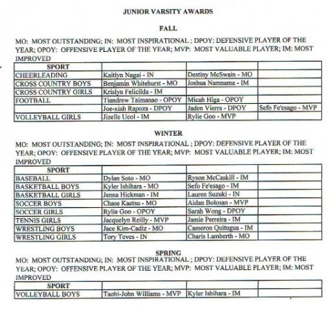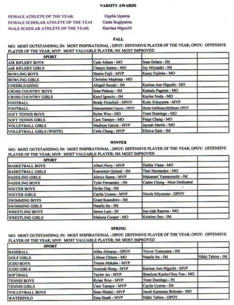 Congratulations to all the the student athletes proudly represnting the Pearl City Chargers 2019-2020 Athletic Award Winners!