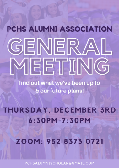 If you would like to attend, please email us at pchsalumnischolar@gmail.com for the link.