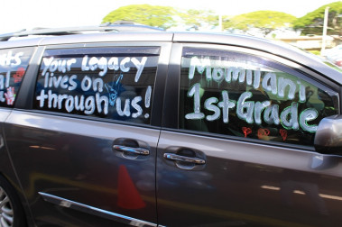 Momilani Elementary School hosted the “Gratitude Drive Through Celebration” from 11:30am to 1:30pm with hundreds of cars decked out with farewell signs that displayed special messages of congratulations and mahalo from her adoring Momilani ohana.