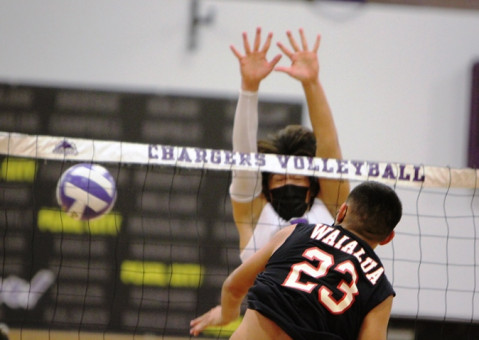 Waialua won the first set 25-19 on this kill by Pohaku Pule