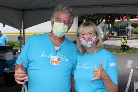 Also, mahalo to Rich Olsen from AO and his tent contractor team for providing and setting up the two 20’ x 20’ tents, tables and chairs, and beautiful potted plants that decorated and complimented the HPH vaccination site at the Pearl City Shopping Center. Mahalo to Cliff Meyer from Show Pro Events and Entertainment for the wonderful sounds throughout the event.