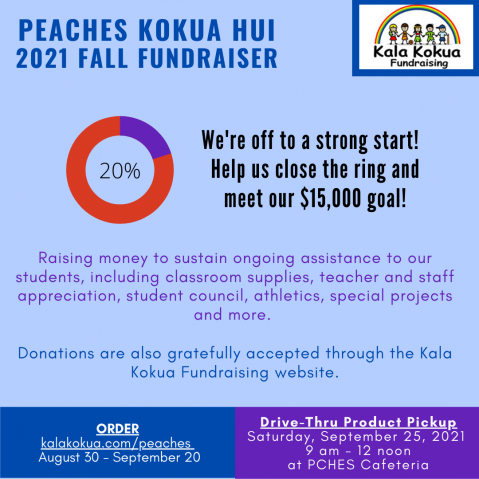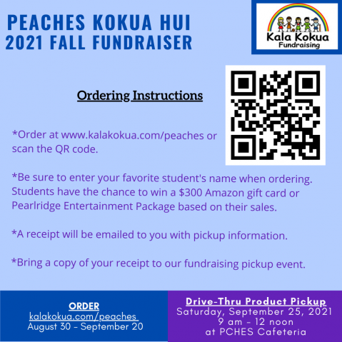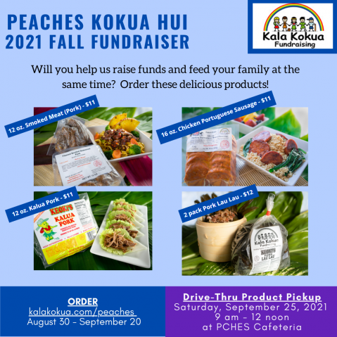 Pearl City Highlands Elementary School (PCHES) is having a Fall Fundraiser with Kala Kokua, where ordering is from Aug 30 – Sept 20 and pick up is on Sept 25, 2021 Saturday from 9am-12pm at the school. Orders are placed online, there are 4 yummy frozen products to choose from and the proceeds will help the keikis at the school. In addition, monetary donations are also gratefully accepted through the Kala Kokua Fundraising Website, which will go directly to the school.