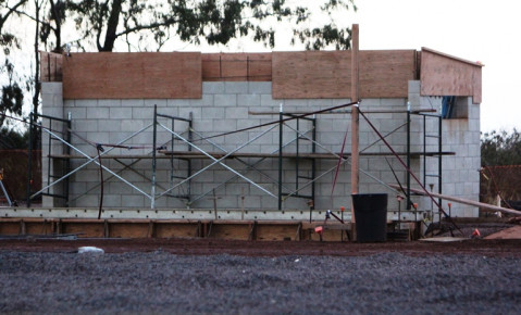 Restroom facilities and a storage building is under construction as well. Restrooms! Yay!
