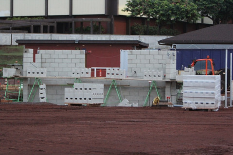 The baseball diamond’s pitching mound and home plate back stop fencing are rising and taking their place amongst the view from a top the hill of Pearl Harbor and the Pearl City skyline and future early morning sunrise and late inning sunsets.