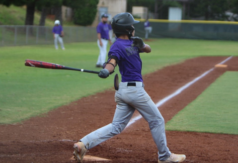 Pearl City’s Jayson Au Hoy went 2-4 with a triple, double and 2 RBI against the Trojans. Jayson is pictured slamming a 2 RBI double in the bottom of the fourth inning.