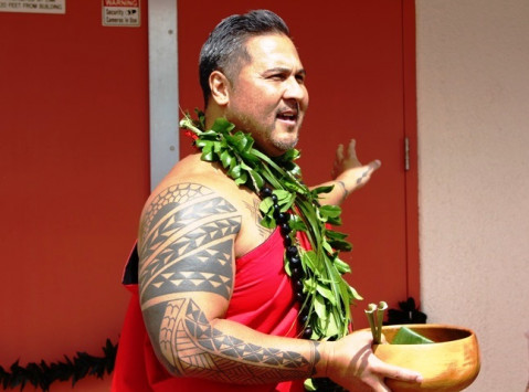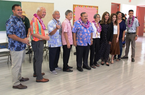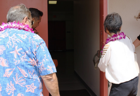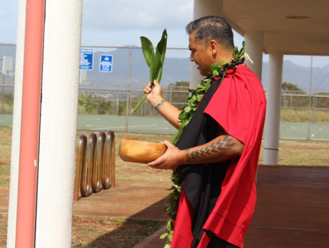 The event began with Honolulu City Councilman Brandon Elefante introducing special guests in attendance followed by Kahu Makani Tabura performing a traditional Hawaiian blessing and untying of a Maile lei at the entrance to the facility. Pearl City Neighborhood Board President Larry Veray and PCNB Board Member Elayne Funakoshi assisted in the untying of the Maile lei and opening of the facility front doors.