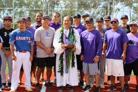 Pearl City High School Athletics Director Reid Shigemasa, Assistant PCHS Athletics Director Mike Pang, PCHS Academies Principal Liane Saito Sataraka, Chargers Head Baseball Coach Wes Yonamine, Chargers Assistant Head coach Gary Miyama, PCHS Athletic Trainer Jason Ishikawa, and PCHS Athletic Trainer all participated in the blessing ceremony.