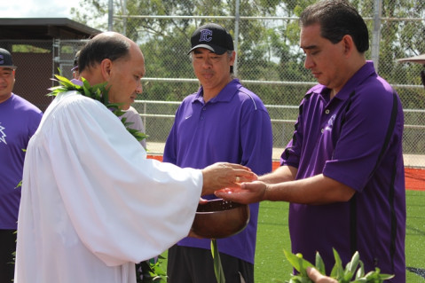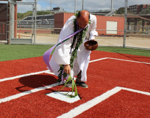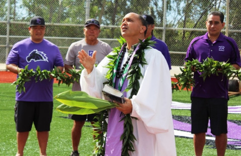 In the light of a very special Good Friday morning sun, Kahu Kordell Kekoa performed a traditional Hawaiian blessing upon on the brand new Pearl City Chargers and Lady Chargers “Field of Dreams” as it sparkled under beautiful, Pearl City blue skies.
