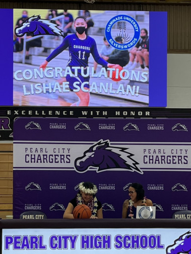 Attached are some pictures from the signing ceremony today for Lishae Scanlan. A Pearl City senior, Lishae will be playing college basketball at Chaminade University.