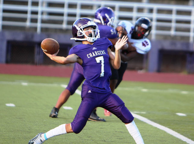 Chargers and Rams play to 19-19 tie in OIA JV Football (8.13.2022) Cover photo: Pearl City Chargers starting JV QB Ikaika Torres